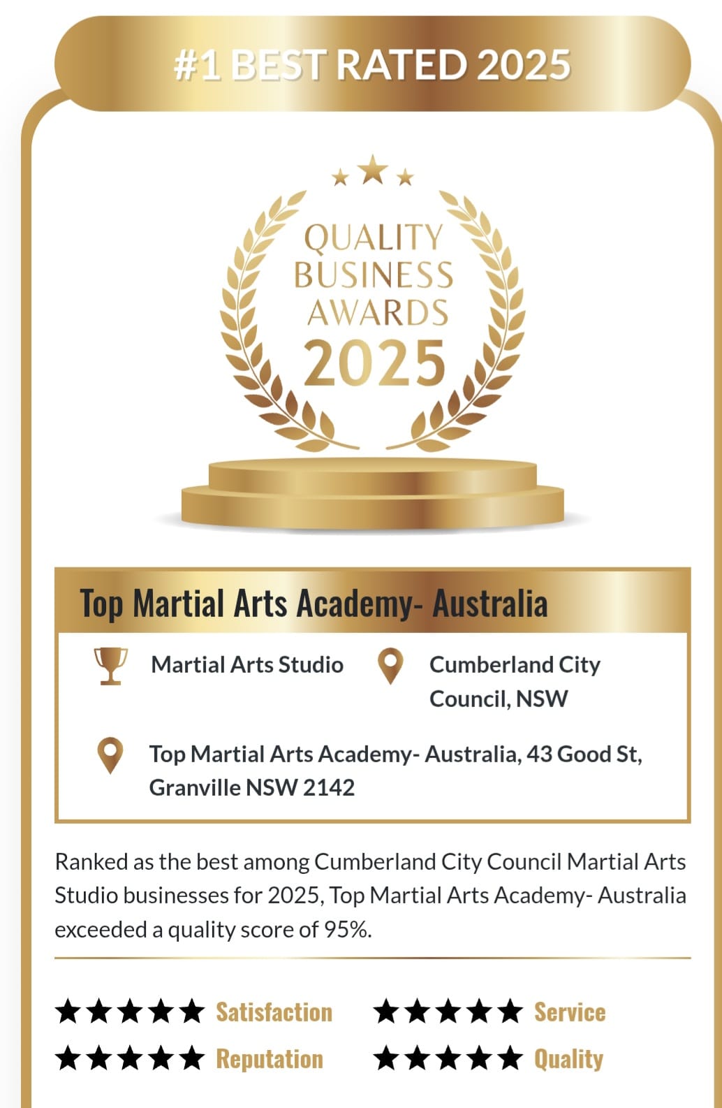 It was my son's dream to learn taekwondo and I am so happy to say that now he is training under one of the Taekwondo Australian Masters champion. Master John is helping him to achieve his dream. Thank you team Top Martial Arts.